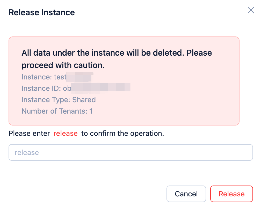 On the Instances page, find the instance you want to release and click Release in the Actions column.