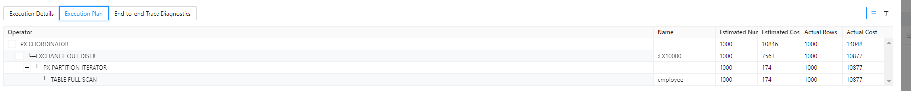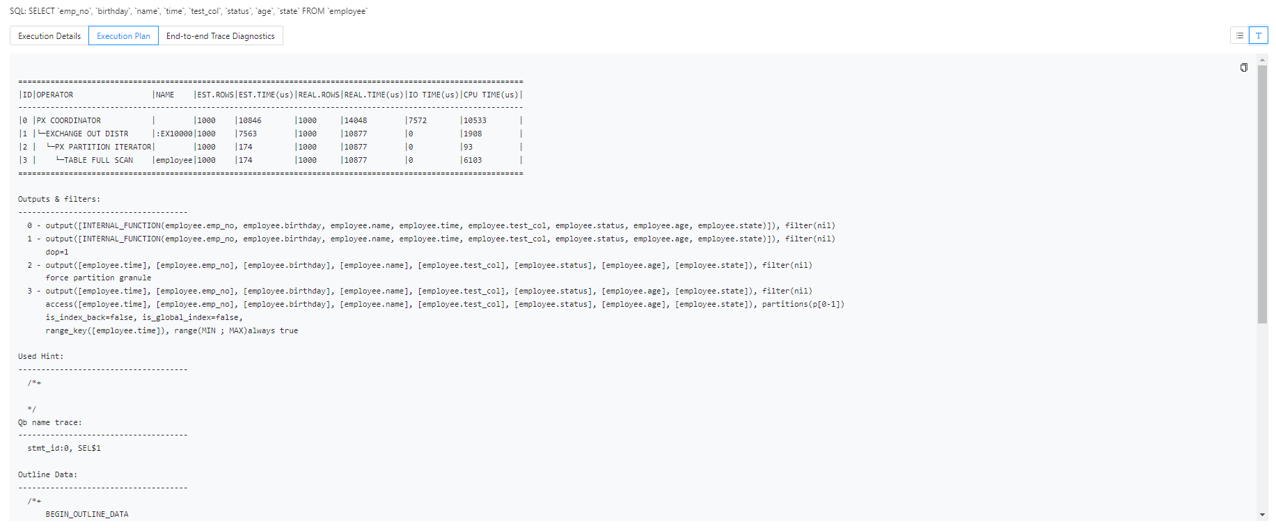 . This provides a system estimation of the data to be executed before executing the SQL statement (result of the EXPLAIN PLAN operation), which may slightly differ from the actual executed data after executing the statement.