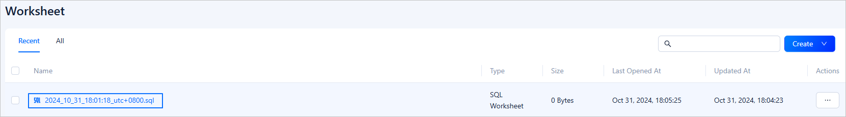 In the worksheet list of the workspace page, click the name of a worksheet to open its SQL window.