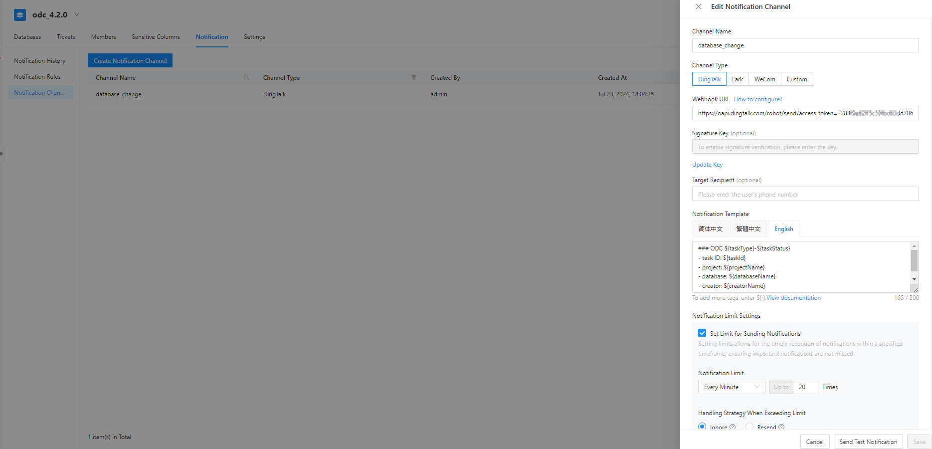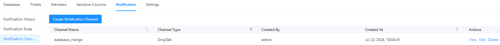 This topic describes how to view, edit, and delete a notification channel.