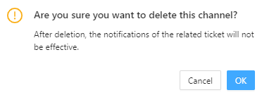 In the notification channel list, click Delete in the Actions column of a notification channel to delete it.