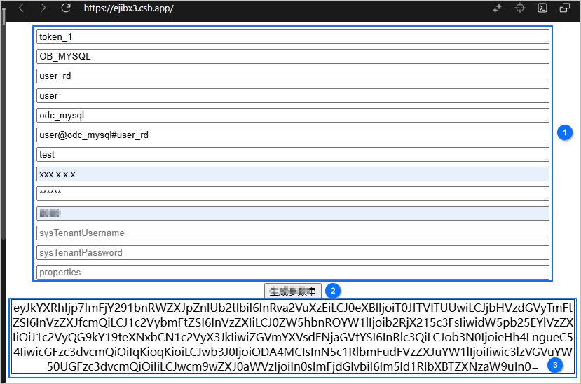 | Redirection to the login page | On the login page, you need to enter the account and password to log in to ODC. The administrator can assign privileges by using a public connection and do not need to let regular users know the database account and password. |