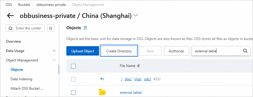 ODC V4.3.3 and later allow you to create an external table by executing SQL statements in the SQL window, and to map an external file to a database managed by ODC by specifying the file path. You can view the existing external tables in the resource tree of the SQL window. For more information, see Create an external table.